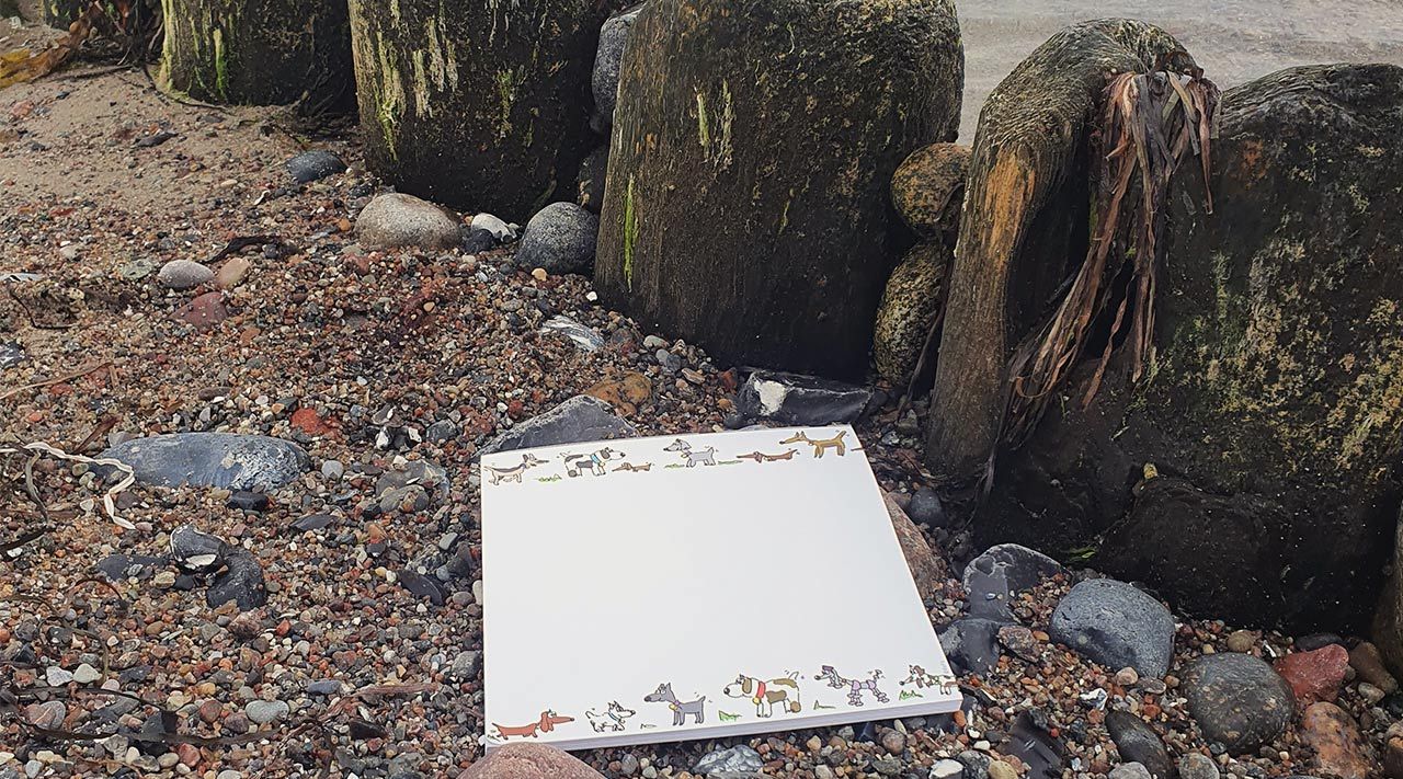 "Moment, ich muss mir das mal eben notieren, wo ist denn noch gleich ein Zettel?" Hier ist ein Zettel, ein ganz besonderer mit vielen freundlich blickenden Hunden. Du möchtest auch so einen haben, denn dein Liebling sieht so aus wie der kleine Pepe?
